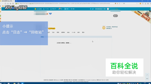 点击“日志”选项,然后找到“回收站”并点击。