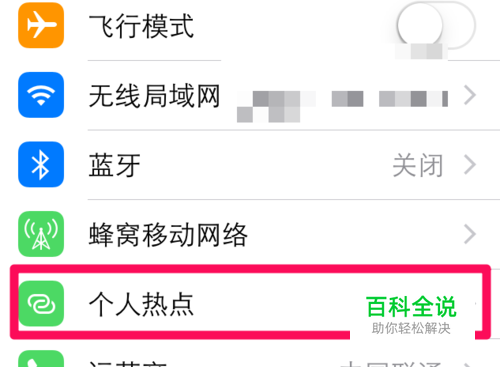 在iphone手机进入设置,点击个人热点。