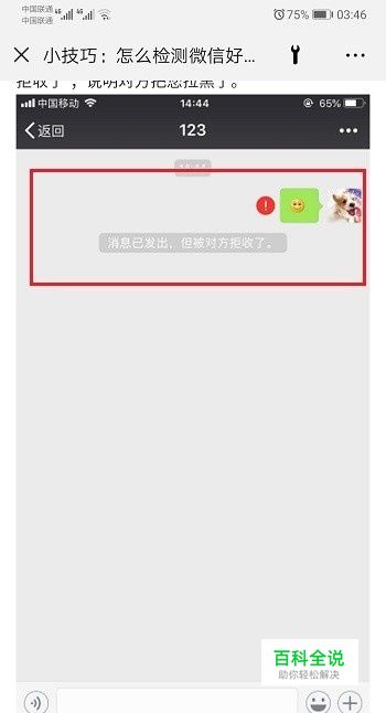 第二步如果出现了“消息已发出,但被对方拒收了”,代表已经被拉黑了,如下图所示: