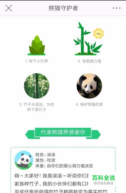 【了解竹子成长进度】 进入熊猫守护者首页,点左上角头像那里数字部分,就能够打开个人页查看微力值及还需要多少才能兑换竹子。