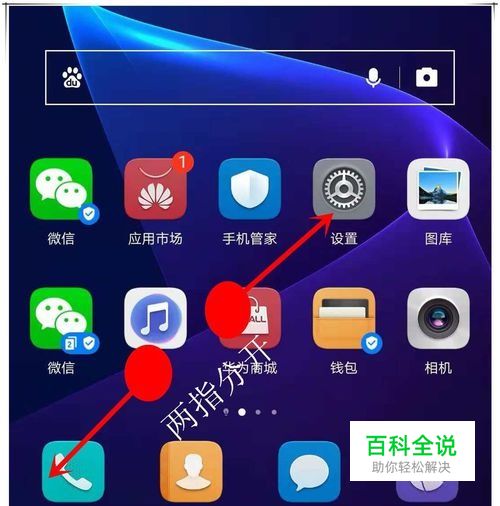 荣耀8青春版手机隐藏桌面应用图标第二步:然后,用两根手指并拢按放在手机屏幕的中间位置,保持按下状态,向外分开滑动。