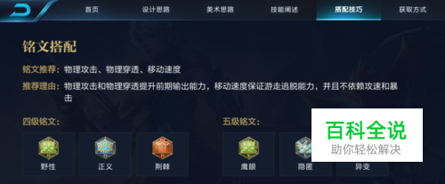 . 蓝色铭文带隐匿,加移速和物理攻击,配合百里守约的被动,能快速穿梭战场各处 。 .