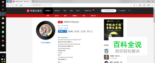 二:打开浏览器好了以后,你就搜索你登陆的音乐平台,如 网易云音乐 QQ音乐 酷我...(其实进入官网后,你不需要登陆就行了,登陆还要输入账号和PW...) 如图,我找到了我想下载的歌,大家都知道witch doctor要版权,可是下载要开VIP,我这种穷屌丝咋开的起VIP呢?