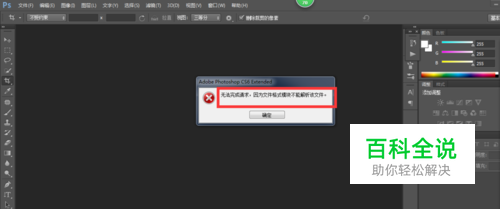 首先打开PS软件,按ctrl+o选择准备处理的图片。结果出现如图无法完成请求的情况。