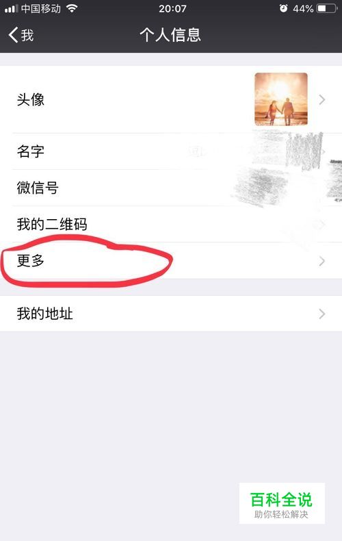 首先打开微信,点击个人信息,点击更多