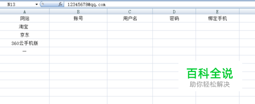 首先,用Excel 做出以下格式的表,主要是整理你正在使用的网站。