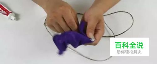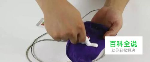 再准备一个平时擦桌子用的抹布,把牙膏这样挤在抹布上,只要挤上一段就可以,然后我们拿着充电器线这样来回的擦拭。大家如果看到牙膏已经没有了,我们再挤上一点牙膏,大家看一下我们是不是擦拭的非常干净整洁呢。