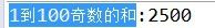 C语言版 #include<stdio.h> int main() { int i, sum=0 ; i=1 ; while (i <= 100) { sum += i ; i += 2 ; } printf("%d\n",sum); }