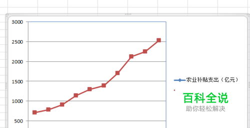 首先打开excel插入一张折线图,小编这里已经做好了,点击折线图右侧的图例,用鼠标拖动周围的控制按钮就可以改变图例的大小了 这里注意调整的时候小心使一些内容“被消失”