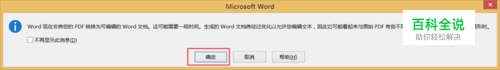 实现PDF转换成Word文档最基本的方法——利用Word2013及以上版本程序。 直接利用Word2013打开需要进行转换的PDF文档,此时将弹出如图所示的提示窗口,直接点击“确定”按钮。