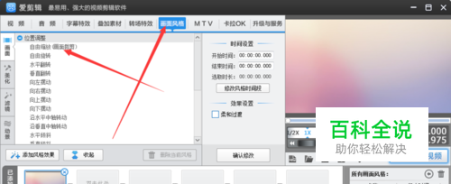 视频缩放可以先选择右下角的”添加风格效果”,选择为当前片段添加风格。