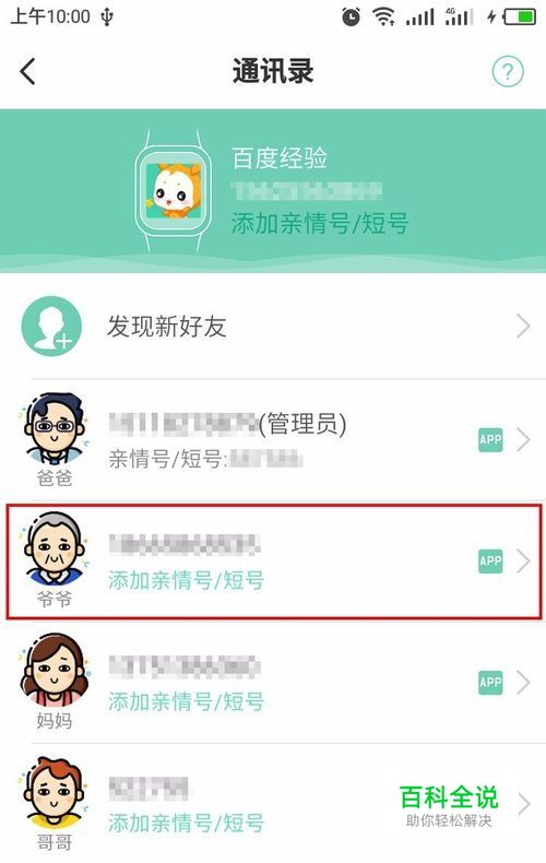 找到想要转让的联系人(注意:被转让的人必须是已经绑定手表的联系人,就是右侧的标记为“APP”的人),点击进入