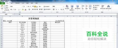 打开Microsoft Excel2010,打开举例文件“工资表”。