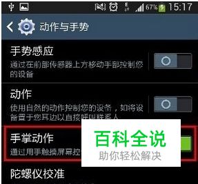 方法二:手掌动作截图 1、首先需要进入三星S5设置,然后找到“动作和手势”设置,之后再开启“手掌动作”,最后将屏幕截取开启即可,如下如所示: 2、开启三星S5动作截图后,我们在需要截图的界面,通过从左往右或者从右往左滑动屏幕,即可实现截图。截图后的图片,同样在相册中可以找到。