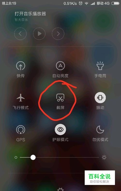 第一种方法使用红米note2屏幕上的快捷键,往下拉屏幕在下面截图这里,点击红圈内的图标进行截图,这里截图只能截往下拉以前的界面不可以截跟下面截图一样的,就是往下拉出的界面,想截图这个界面我们用另一种方法