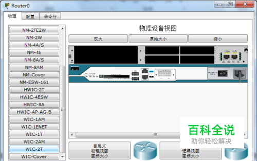 关闭电源给两台路由器加上“s0/0/0”接口,打开路由器,关闭电源,点击箭头的地方,从那里拉出四个这样类的接口,拖到右边四个“物理设备视图”下的四个黑色地带,脱完了四次后,给电源加上电,同理,另外一台路由器也做相同的做法,如下图所示: