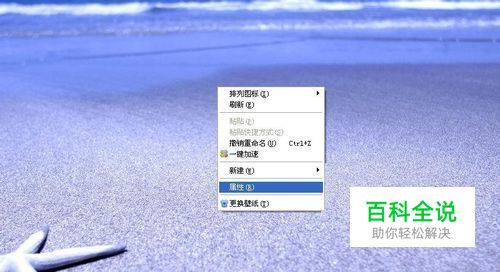 首先我们先打开电脑,打开之后单击桌面空白处,然后单击右键,会出现如图所示,这时我们在下拉的选项里单击“属性”按钮。