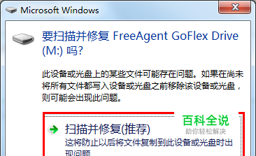 在插入可移动磁盘后,弹出“修复”界面时,我们直接点击“扫描并尝试修复”按钮。