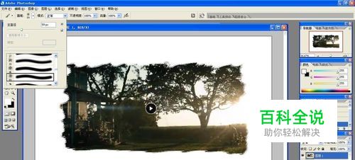 第二种效果,不用新建图层,将前景色改成白色,选用滴溅画笔,直接将照片边角覆盖。