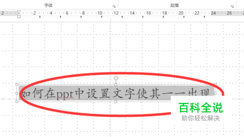 首先要在powerpoint中打开一个ppt。选中这个ppt中想要呈现这种动画效果的文字,如图所示。