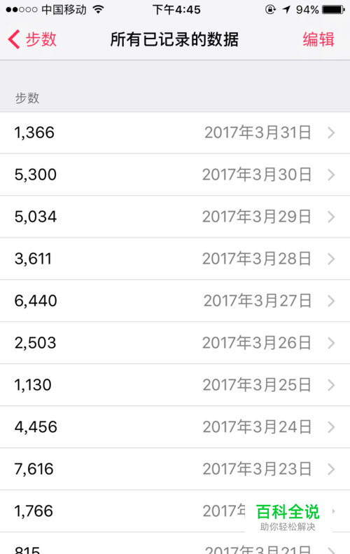 点击显示“所有数据”即可查看曾经的步行数据历史记录,以后用户每天的锻炼(步数数据)都可以在健康功能里查看,数据会不断的累积和增加。