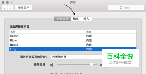 在声音设置窗口中,请点击顶部的 “输出”栏目,如图所示