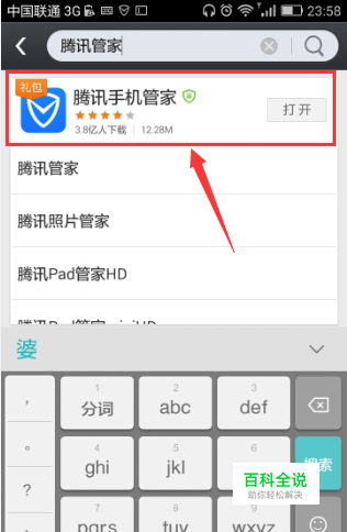 这里我们需要在手机上安装一个腾讯管家。如图示,我们在应用市场下载并安装。