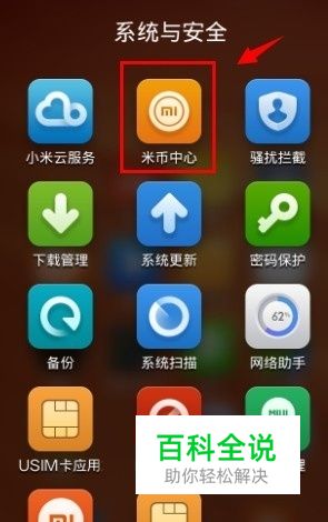 进入系统与安全后,就可以看到一个米币中心,点击进入。