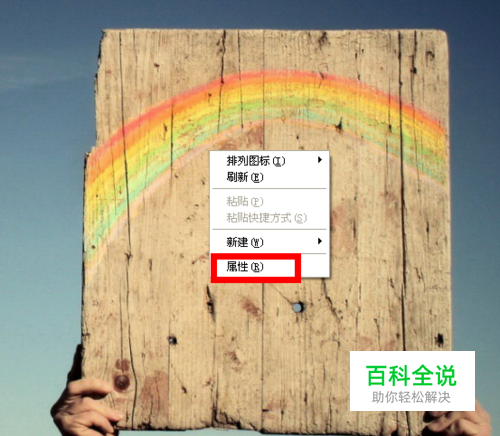 打开电脑来到电脑桌面,然后鼠标右键电脑空白的地方找到【属性】功能进入。