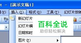 打开PowerPoint,点击“插入”菜单中“幻灯片编号”命令