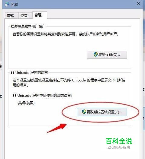 在管理选项下面点击【更改系统区域设置】按钮 。