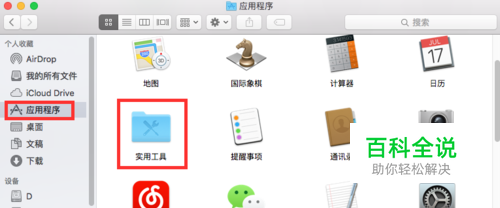 首先打开“finder”,之后选择“应用程序”,找到“实用工具”,点击进入。