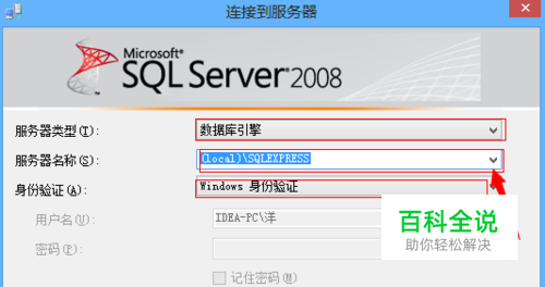重新打开 SQL Server Management Studio,服务器类型选择 数据库引擎,服务器名称填 (local)\实例名或者 计算机名\实例名(计算机名为你的计算机名称,实例名一般为SQLEXPRESS或者安装SQL时创建的实例名),身份验证选择 windows身份验证。
