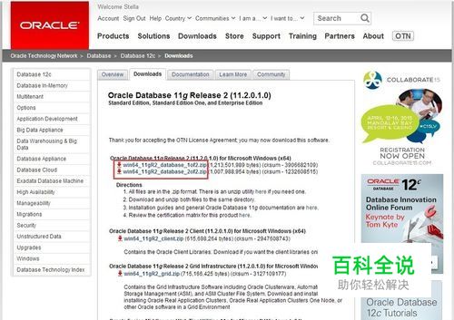大家可以根据自己的操作系统是多少位(32位或64位)的,到官网下载相应的安装程序,如下图所示。 有一点需要注意,Oracle的安装程序分成2个文件,下载后将2个文件解压到同一目录即可。