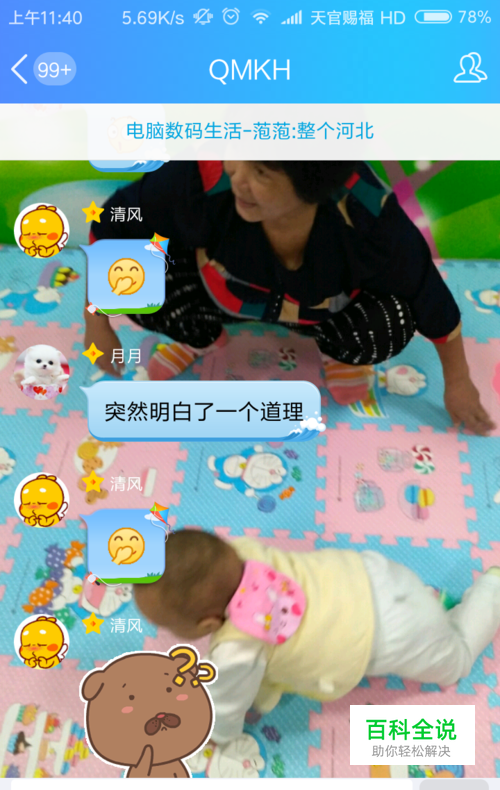 进入到QQ的聊天记录,可以是群聊也可以是个人,如图所示,点击对话框下边的红包界面。