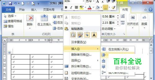 Word2010中的表格怎样插入整行整列和单元格