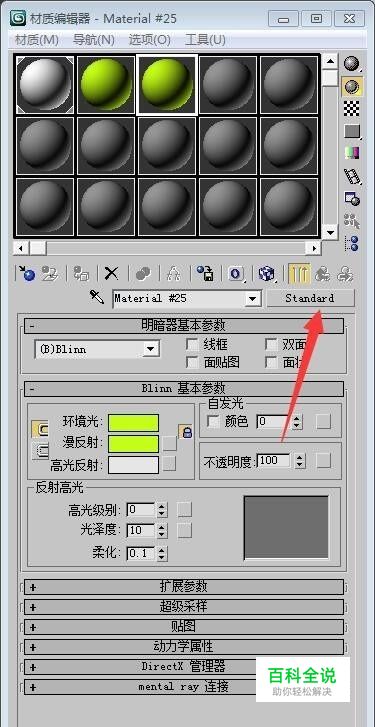 打开你想要对这物体的颜色进行封装对应的材质,点击这后面的standard。
