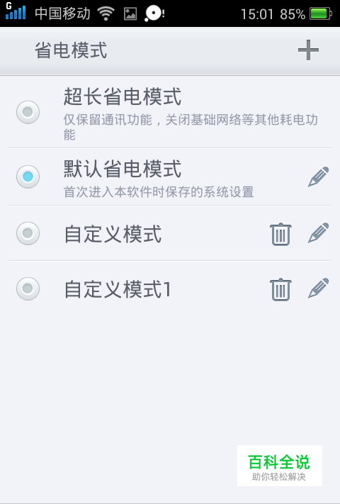 在主界面上,有一页叫做“省电模式”打开这个界面后,点击右上角处的加号即可