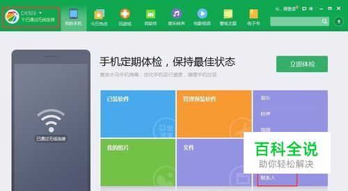 首先手机连接电脑上的手机助手。