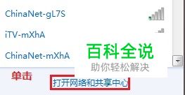 利用VPN的方法:一种是去网上下载VPN软件,再购买账号登录,最后选择线路实现代理。此种方法极为简单,不作赘述。现讨论另外一种方法。先单击Windows任务栏右下角网络图标,再单击“打开网络和共享中心”。