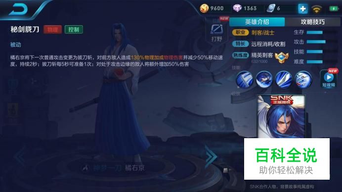 作为SNK限定中最受欢迎的角色,橘右京拥有帅气的外形与不俗的伤害制造能力,今天就给大家带来一个刺客橘右京的攻略。