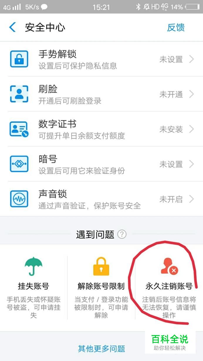 最后会弹出如下图所示的界面,然后点击永久注销账号。