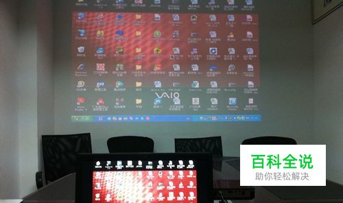 当投影机与电脑连接好之后,投影画面会出现三个图标,选择中间的那个图标,单击一下