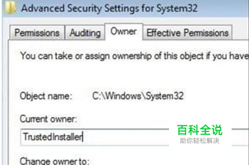 在弹出窗口中切换到“所有者”选项卡,便可看到目前的“所有者”是“信任安装”;
