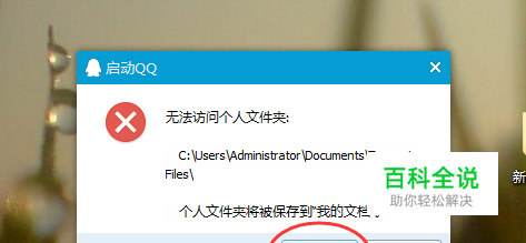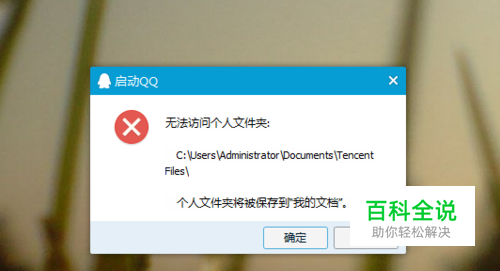 再次点击QQ图标,还是会提醒无法访问个人文件夹,不要急,点“确定”就行了。
