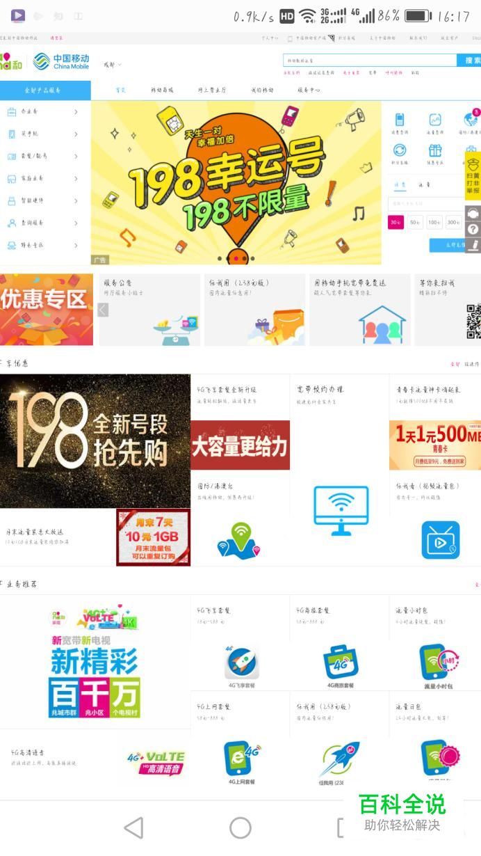 首先用浏览器搜索中国移动的官网,然后点击进入官网,可以看到图2的页面。