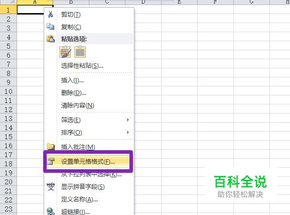 我们任选一个单元格,然后右击,选择设置单元格格式;