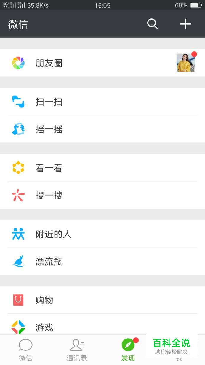 首先点击“发现”,找到朋友圈的入口。