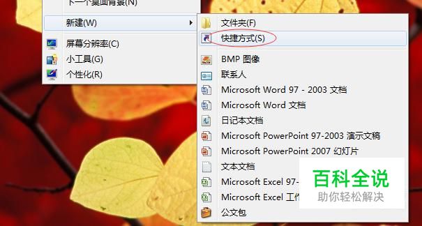 桌面点击鼠标右键,选择“新建”,接着选择“快捷方式”。