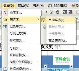 这时,所有标题单元格都会出现小三角符号,点击它,会出现下拉菜单,如果我们要查看指定人的成绩,直接在下拉菜单中选择他即可。